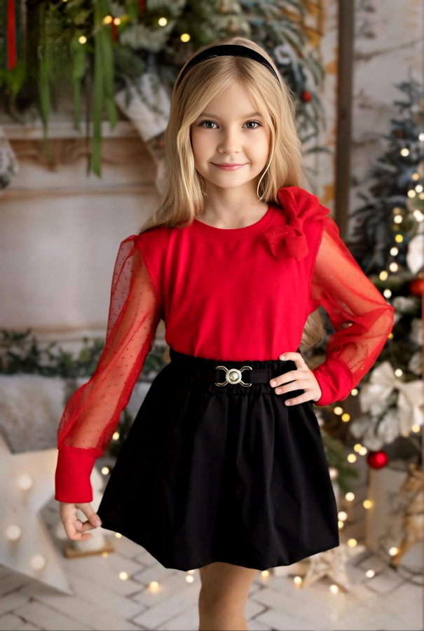 Červené tričko s tylovým rukávom