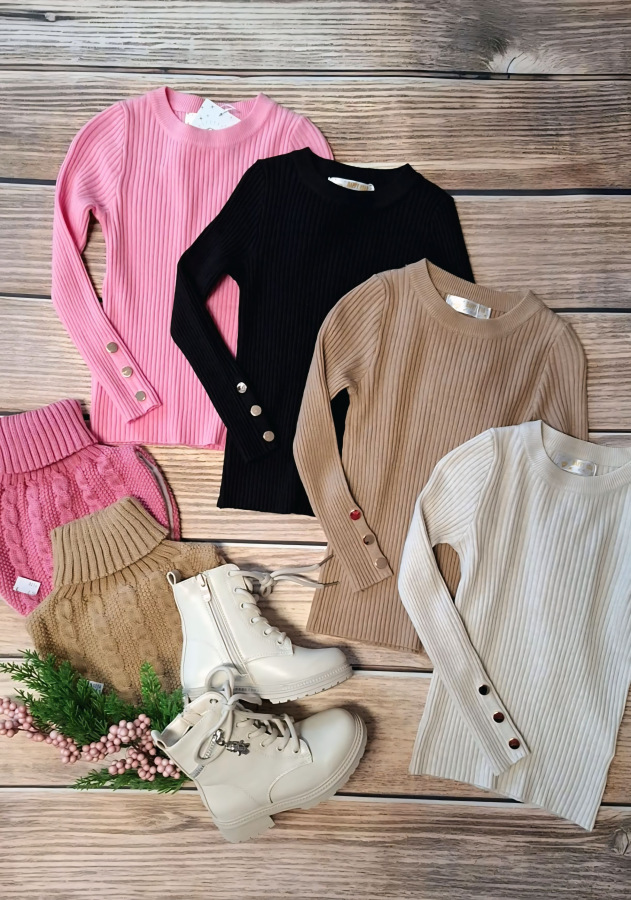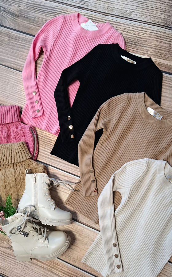 - svetrík zdobia zlaté gombíky na konci rukáva